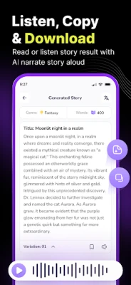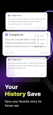 Drivs av sofistikerade AI-algoritmer, garanterar AI Story Generator App berättelser av exceptionell kvalitet. Varje genererat verk är unikt och fritt från plagiat, vilket möjliggör trygg användning i alla sammanhang. Med stöd för ett tiotal språk, inklusive svenska, engelska, portugisiska och spanska, öppnas nya dörrar för globalt berättande. Appen levererar alltid precisa och relevanta narrativ, direkt kopplade till din ursprungliga prompt, och undviker onödig information. När din berättelse är klar kan du smidigt kopiera den eller ladda ner den för att enkelt dela med dig av din nya skapelse.