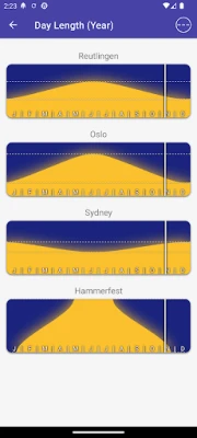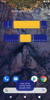 Denna innovativa klockapp erbjuder mer än bara tid. Den beräknar noggrant soluppgångs- och solnedgångstider, och presenterar sedan skymningen med en unik, jämförande grafik. Få en djupare förståelse för dygnets ljusförhållanden och upplev dem på ett helt nytt sätt.