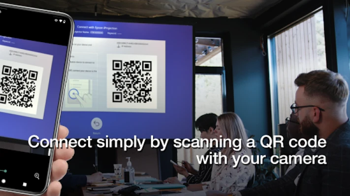 Effektivisera ditt samarbete med smarta anslutningsmöjligheter. Anslut enkelt genom att skanna en projicerad QR-kod, vilket eliminerar krångel med manuella inställningar och snabbt får igång mötet. **Epson iProjection** är designad för dynamiska miljöer och låter upp till 50 enheter ansluta till samma projektor. Dela en enskild skärm med alla anslutna deltagare eller visa upp till fyra individuella skärmar samtidigt, perfekt för jämförelser och grupparbeten. Denna flexibilitet skapar en interaktiv och produktiv atmosfär för alla användare.