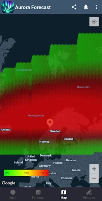Håll ett vakande öga på Kp-indexets dynamik med realtidsuppdateringar och trendanalyser, så att du alltid är förberedd när aktiviteten ökar. Visualisera norrskenets troliga utbredning med interaktiva kartor som exakt visar var skenet förväntas synas, ständigt uppdaterade för optimal precision. Dessutom ger detaljerade 30-minutersprognoser dig en unik fördel när det gäller att fånga de mest flyktiga ögonblicken.