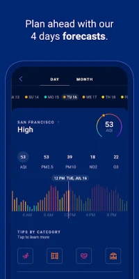 Få dagens luftkvalitetsprognos och se när det är bäst att ge dig ut. Kontrollera föroreningsnivåerna för din löprunda eller nästa resmål. Planera din dag med smarta insikter om luften omkring dig.
