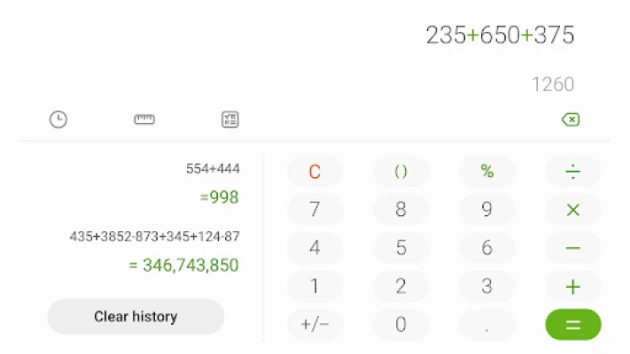 Samsung Calculator hanterar grundläggande matematiska operationer och avancerade ingenjörsberäkningar. Utforska din beräkningshistorik för att återanvända tidigare formler. Dessutom erbjuder Samsung Calculator smidig enhetskonvertering för yta, längd och temperatur, direkt i appen.