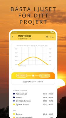 SunOnTrack erbjuder en omfattande "Data View" som levererar en uppsjö av detaljerad information om solens position, dagslängd, solens höjd och azimut, samt precisa tider för gryning och skymning. Du kan enkelt spara och återbesöka viktiga platser, från inspirerande fotoscener till din egen fastighet, och få en tydlig överblick med den integrerade kartfunktionen. Verktyget är designat för att vara användarvänligt, estetiskt tilltalande och fullspäckat med funktioner som en tidslinje för att snabbt justera tidpunkter, ett mörkt tema för nattanvändning och offline-hjälp. Det är din ultimata följeslagare för att förstå och utnyttja solens kraft och skönhet, var du än befinner dig.