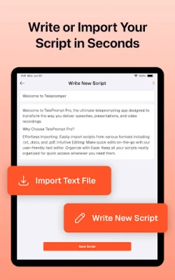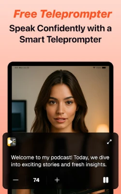 Spela in videor enkelt och professionellt med Teleprompter. Slipp memorera manus och leverera ditt budskap smidigt. Teleprompter hjälper dig att skapa engagerande innehåll utan ansträngning, så att du kan fokusera på framförandet och få ut din historia tydligt.
