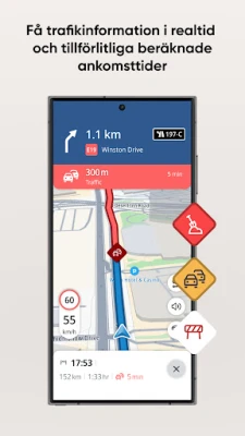 Ta del av detaljerad, sväng-för-sväng GPS-navigering som täcker hela världen. TomToms kartor uppdateras kontinuerligt för att säkerställa att du alltid har den mest aktuella informationen om vägnätet, komplett med tydlig körfältsvägledning och avancerade korsningsvyer som eliminerar osäkerhet. Dessutom håller du dig steget före med realtidsinformation om trafikläget; appen varnar dig för avstängningar, köer och andra incidenter, och justerar proaktivt din färdväg för att du ska komma fram smidigt och utan onödiga dröjsmål.